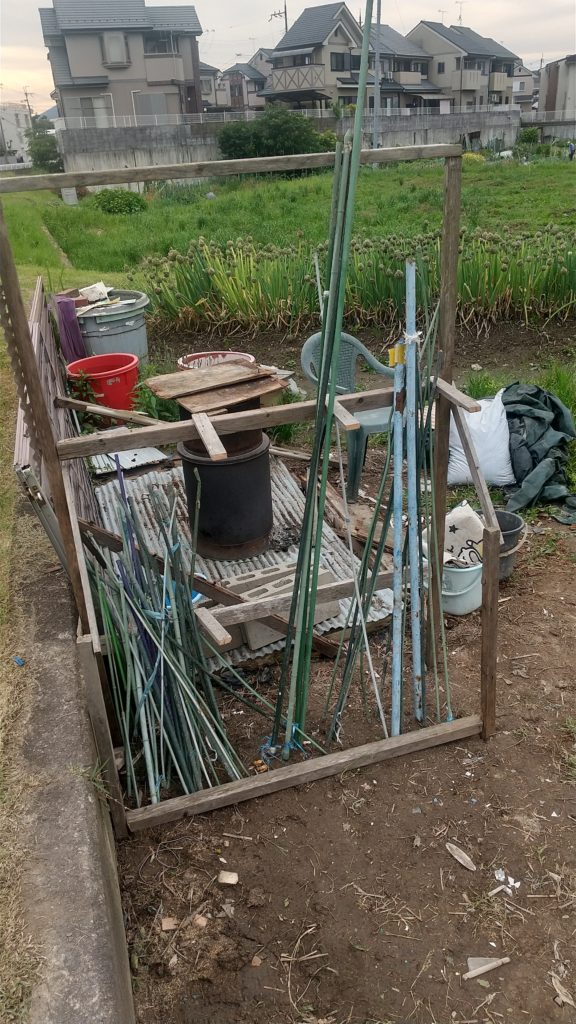これからは、クワやスキやシャベル等を置く物置を作ろうと思う。野菜の収穫まで6月中に出来ればと思う。