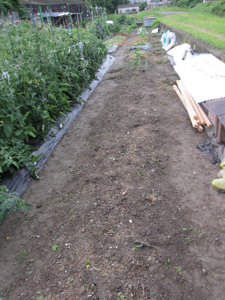 草だらけの畑がなんとか、きれいになった。やれやれだ。まだ雨がつづくから、これから草を見つけたら、こまめに三角クワで削っていこう