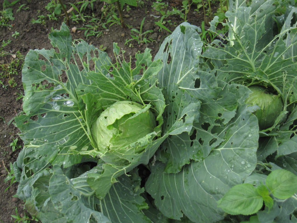 夏キャベツは失敗、上にかけていた、パオパオが小さすぎて、土との間に隙間ができていて、中にモンシロチョウが入っていた。