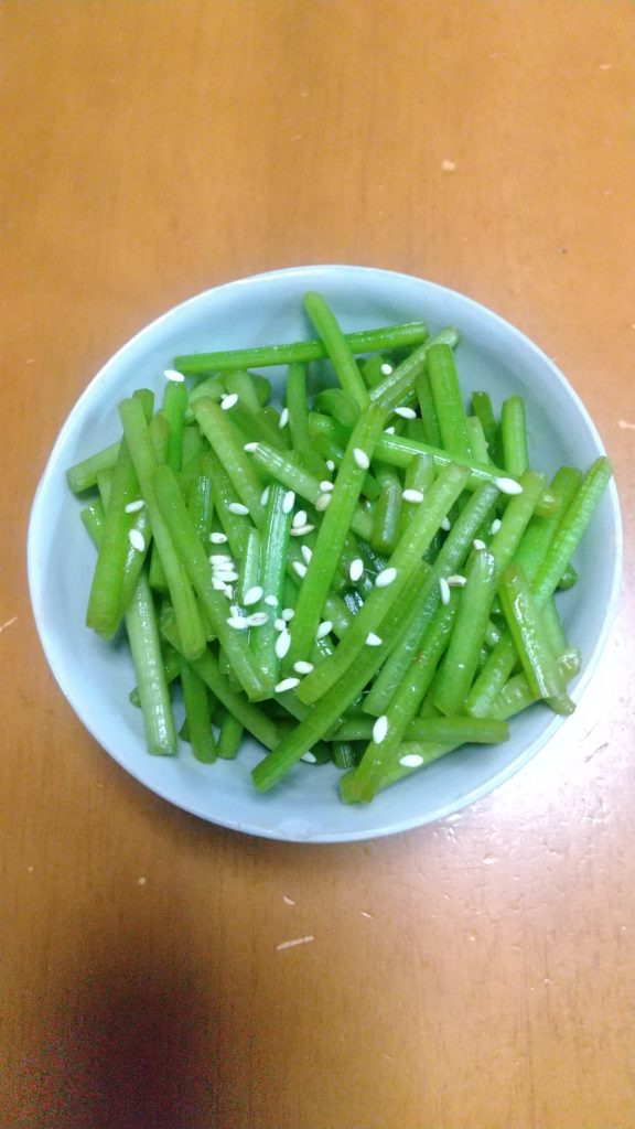芋づるのきんぴら 野菜栽培の記録雑記 2021.8.31 つるの皮をむいた処 見た目はおいしそう 今日の収穫はおくら、ゴーヤ、芋のつる。 いつも同じものばかりの収穫なので、今日はサツマイモのつるを採ってきて、料理してみた。 まだ早いのか、細すぎるのか、料理時間が早すぎたのか、シャキシャキではなくこりこりだった。 味付けは砂糖が足りなかった。なのでもっと後にもう一度作ってみようと思った。つまり失敗という事です。