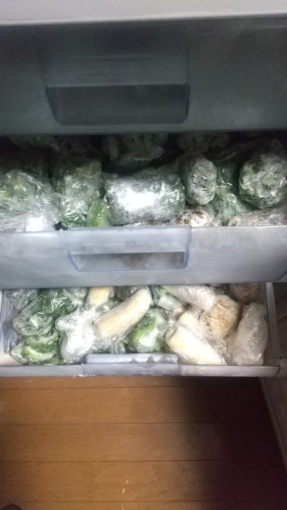 冷凍庫がぎゅうぎゅうで切羽詰まっていた。やすい鶏肉などいつも冷凍しておくが冷凍庫がいっぱいで買えない状態だった。中はゴーヤとバナナとか、おくらとかお弁当用の野菜等、もう無理というほどあった。なので、アイリスオーヤマの冷凍庫を買った。値段は25000円くらいだったか、そう大変な金額ではないし、これからも冷凍するものはいっぱい出来てくるので、無駄ではないと判断した。電気代は月400円から500円だと思う。それも痛いがしょうがない。4段もあるのに3段がつまって入ってしまった。どんだけあったのか。