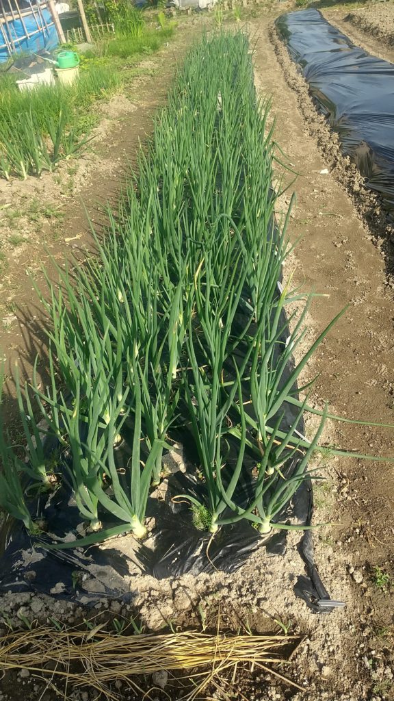 玉ねぎがきれいに大きくなってきた。すこし膨らんできている。このまま収穫まで雨が降り過ぎないことを願う。
