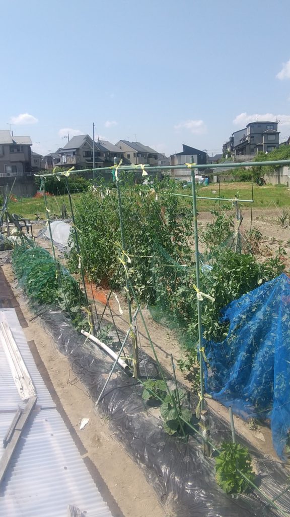 きゅうりネット貼りとトマトの支え 野菜栽培の記録 2022.5.22 きゅうりとゴーヤの支え トマトの支え 今日はお天気も良く暑いくらいだった。早く支えをしなければと焦っていたので、一気にやった。きゅうりのネットはりとトマトの支え、ナスも回りに枠を作った。毎年の事なので慣れてきてはいるが、時間はかかってしまう。ここまで出来れば一段落、がその他も菜っ葉類の間引き等、しなければならないことは色々ある。収穫時期までうまく育っているかのチェックや水やりなどまだまだ目が離せない。