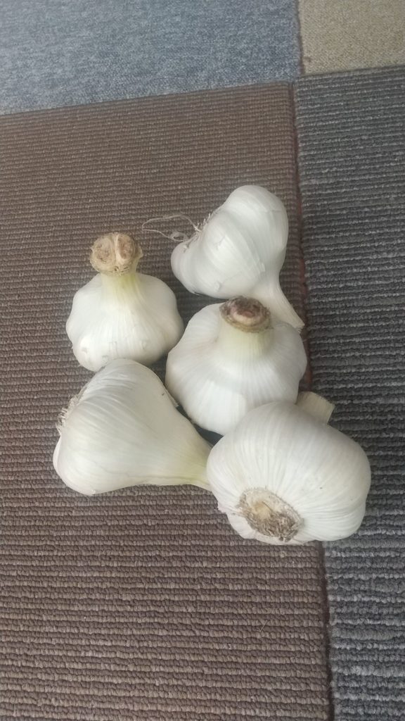 にんにくの収穫をしてきた。今年初めて作ってみた。私のレシピにはあまりにんにくが出てくるのはなくて、でもテレビを見ているとよく使われているから、少しはあったらいいかなと、6個だけ作った。
