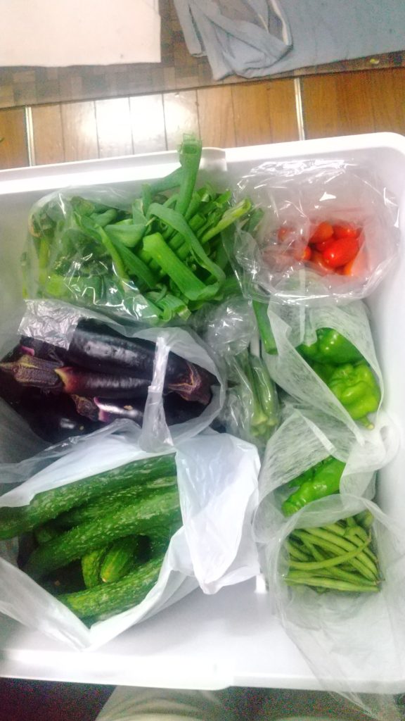 冷蔵庫の野菜室の野菜が、収穫したのを袋に入れて、突っ込んでいたら、なにがなにかわからなくなって、下のは悪くなってたりするので、全部出して整理した。