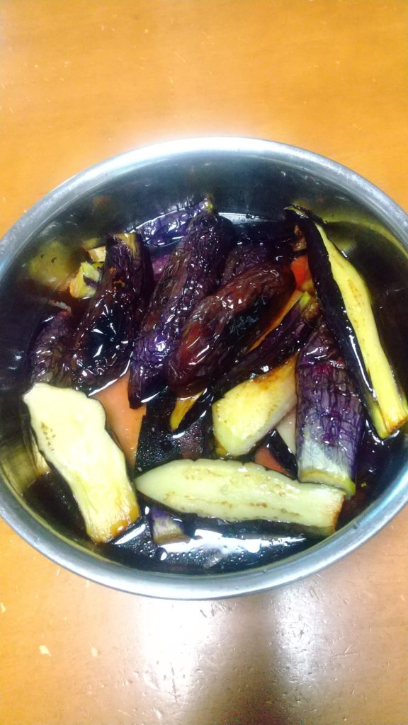 なすは素揚げにして、カンタン酢につけたなす、全部つかった。多すぎだけど、これは好きだからいくらでも食べられる(油が多くカロリー高いのがきになるけど)。冷蔵庫で冷たくすると食がすすむ。日持ちもすると思う。