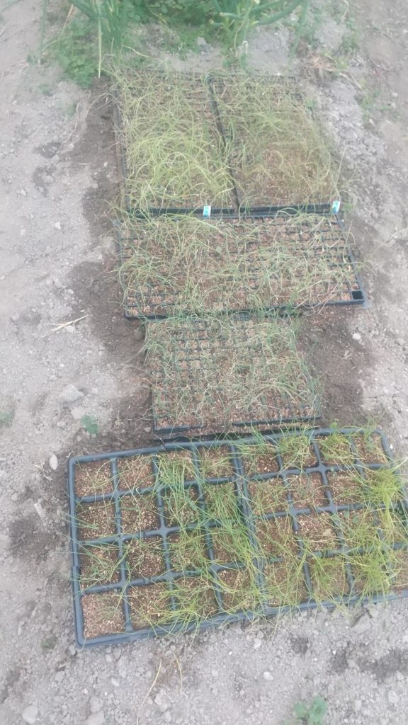 外し方が後の方でつかめた。トレイの端っこを持ち上げて、斜めにすると、穴の土がトレイから外れてスポット抜けた。しかし、これがわかるまでにぐちゃぐちゃに抜いた苗も多かった。この抜き方は来年覚えておかなくっちゃ。