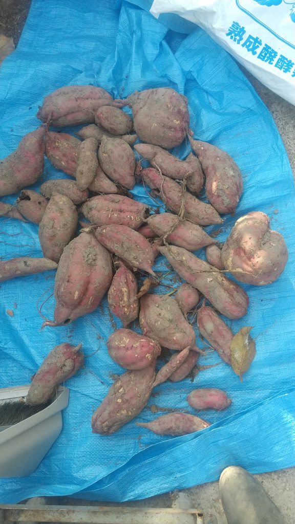 サツマイモはでかいのがゴロゴロ出来た。本当はもう少しお店に並んでいるような大きさで、数が採れるのがベストなのだが、毎年でかいのと小さいのとがバラバラだ。