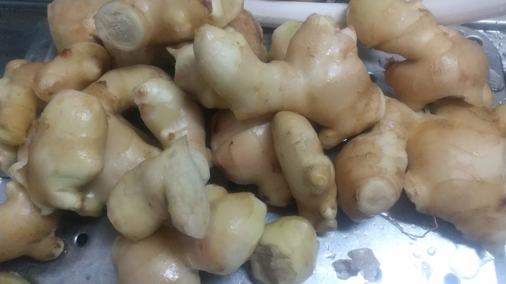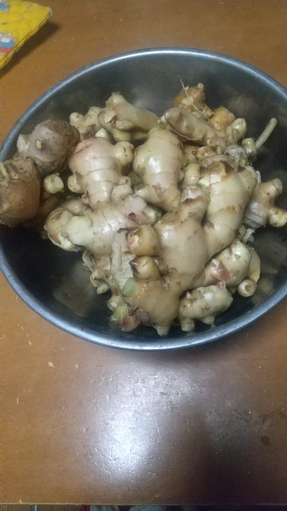 皮をむくのに大変だと思ったが、汚いところだけ採ると薄皮はきれいだったし、市販の生姜も皮なり使う事もあるので、まだ良かった。
