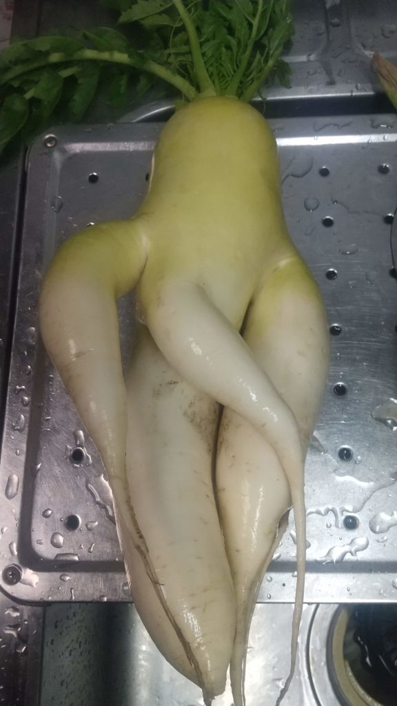 こんな大根も収穫してきた。