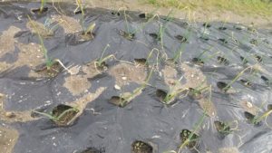 種からつくって植えた玉ねぎの苗玉ねぎと下仁田ネギの苗に、昨年の12月だったと思うが、追肥をした。化成…