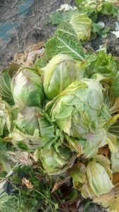 変なキャベツ芽キャベツのようにいっぱい最後に残っていた2個のキャベツのうちの一個が、収穫してみてびっ…