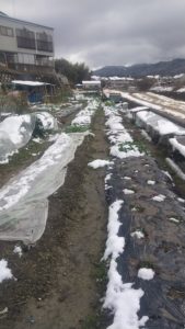 あけましておめでとうございます。今年の元旦のお天気は、昨夜から雪が降り出して、いつもの田んぼも私の畑…