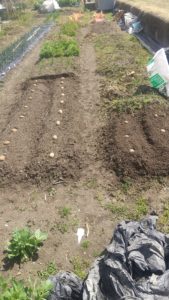 ジャガイモ黒マルチ先日ジャガイモの種をやっと植えた。これだけの広さなのに、メークインと男爵両方植えた…